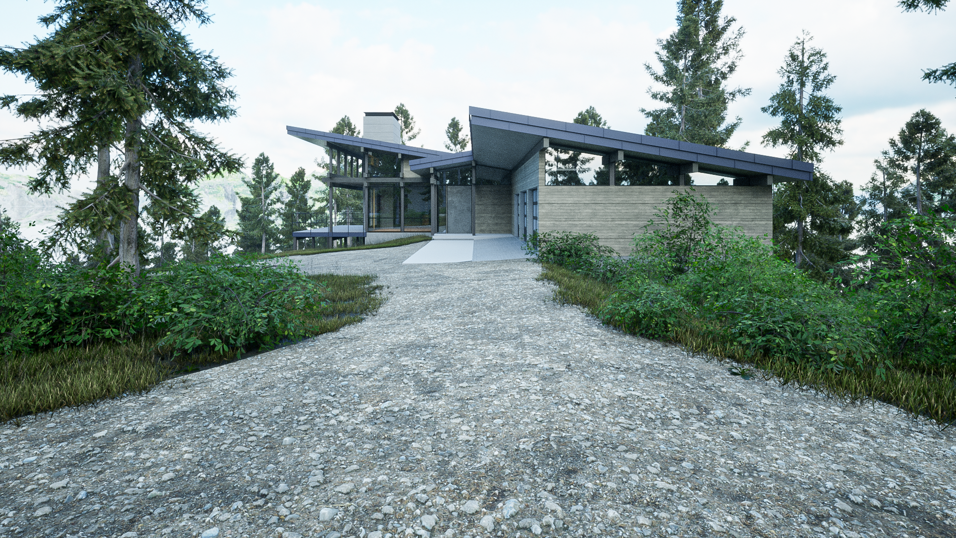 surrounding forest. From the house, distant views of the surrounding mountain ranges and the
