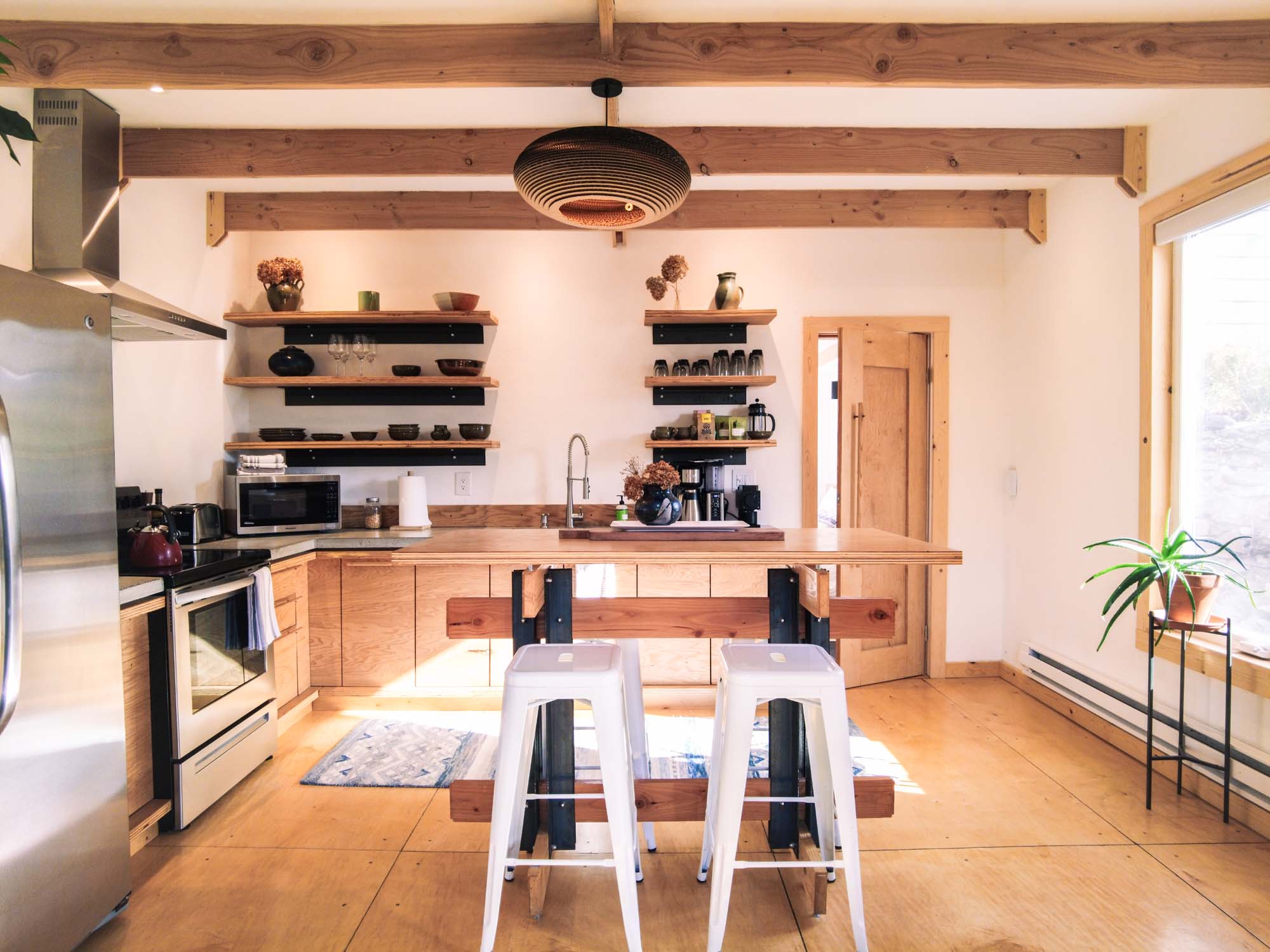 lots of natural light and views of Mount Jumbo. The owner is an architect and carpenter creating many